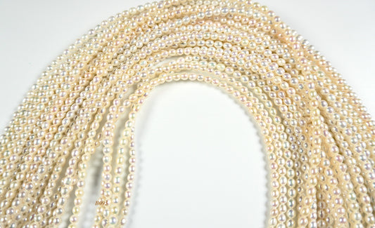 Freshwater Akoya Pearls strand: 3x3.5 to 3.4x4mm small oval top grade pearls